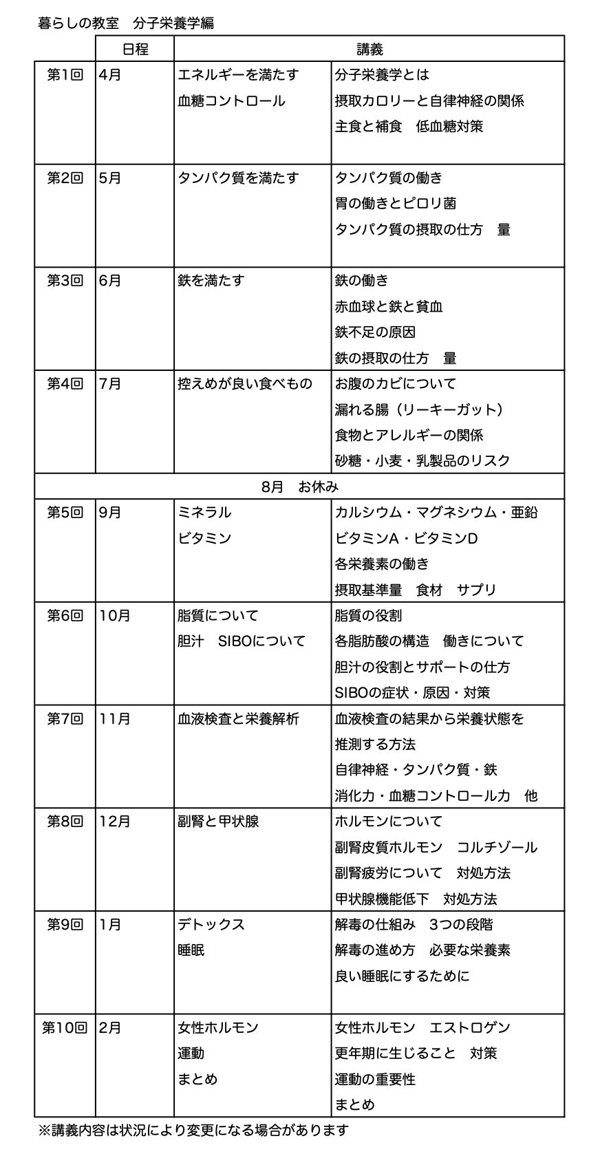 ※本プログラムは「暮らしの教室 分子栄養学編」を受講された方が対象です