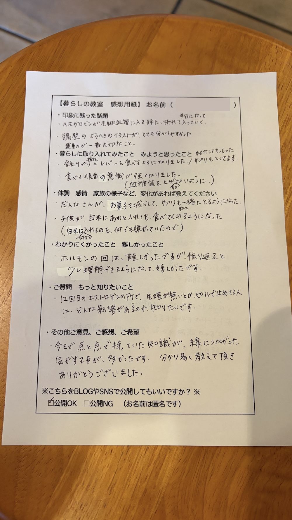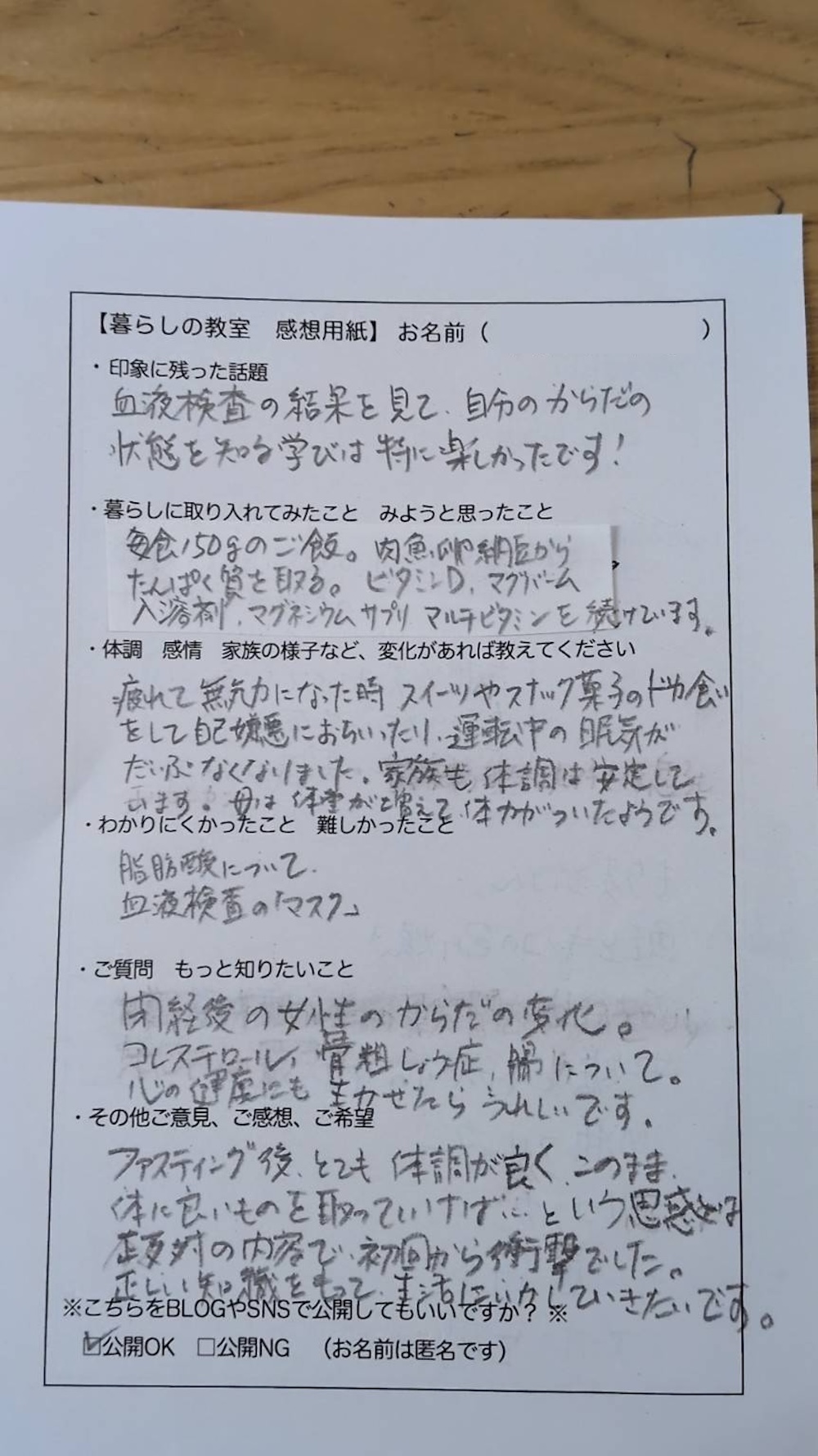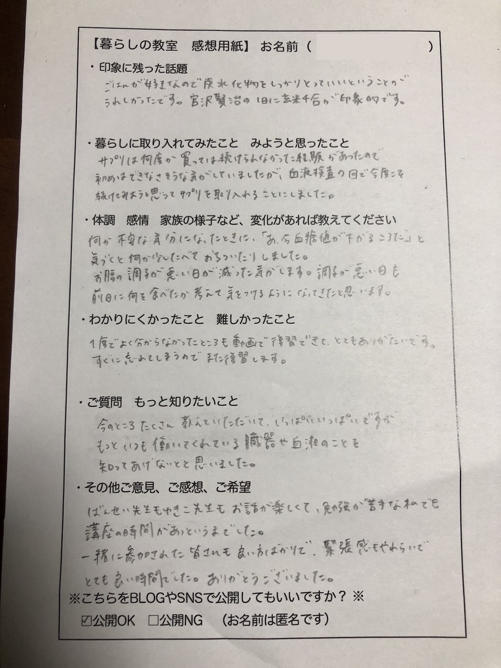血液検査の結果を見て、自分のからだの状態を知る学びは特に楽しかったです!